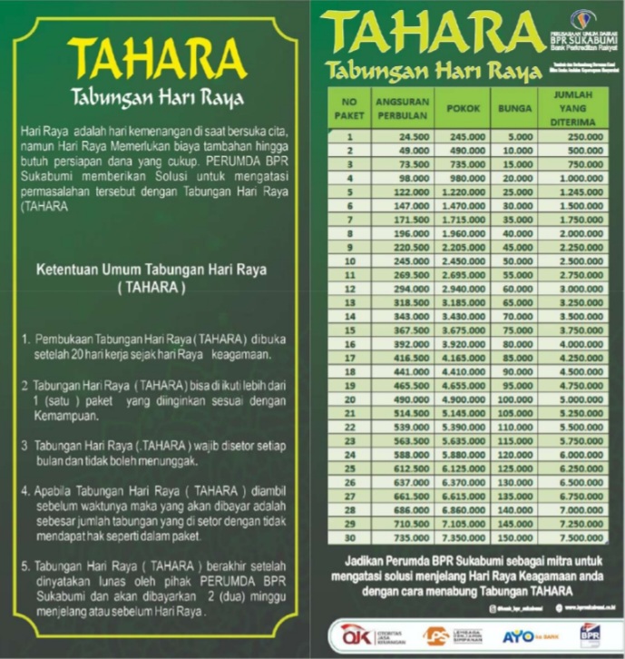 JURNALSUKABUMI.COM – Idul Fitri 2025, Perusahaan Umum Daerah (Perumda) BPR Cabang Sukabumi mengaku produk Tabungan Hari Raya (Tahara) terus naik meroket.