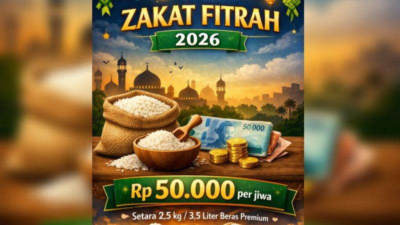 JURNALSUKABUMI.COM – Badan Amil Zakat Nasional (Baznas) Republik Indonesia secara resmi menetapkan besaran zakat fitrah untuk tahun 1447 Hijriah/2026 Masehi sebesar Rp50.000 per jiwa. Nilai tersebut setara dengan 2,5 kilogram atau 3,5 liter beras premium.