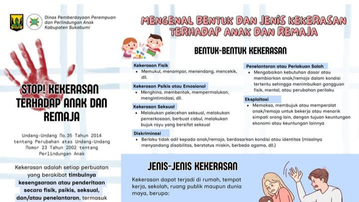 Dikutip dari kanal sosial DP3A Kabupaten Sukabumi, ragam cara dilakukan untuk mengedukasi masyarakat supaya mengenali bentuk jenis kekerasan pada anak dan remaja. Karena kekerasan itu dapat menimbulkan kesengsaraan dan merusak mental serta masa depan anak.
